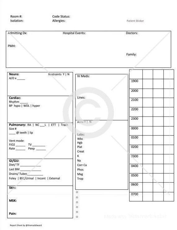 Nursing Report Sheet From New To Icu from images.squarespace-cdn.com This one is cool because it focuses on dividing your shift up into hours. 5 pt med surg brain sheet k6nqjq2pkq4w from idoc.pub i really like the concept of this pocket nurse report sheet notebook. Incident report form report any incident including injury. The nurse folded the page over and lined up the rows for notating vital signs for later transcription to the emr. Click page 2 to view more! Nursing handoff report sheet 06 icu. We asked you for your best brain sheets, and you delivered! 3) icu with charting reminders.